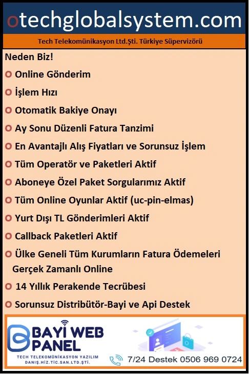 Bütün operatörlerde TL ve Paket Yükleme imkanı.